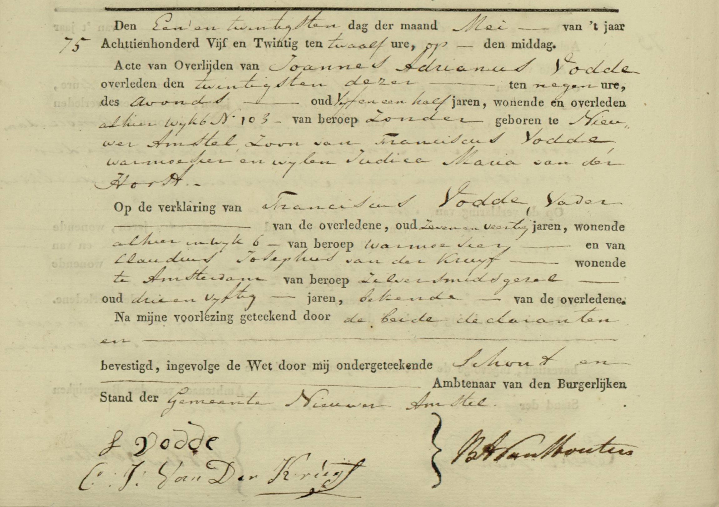 Titel | BS Overlijden Nieuwer-Amstel, akte 75, 21-05-1825 | |