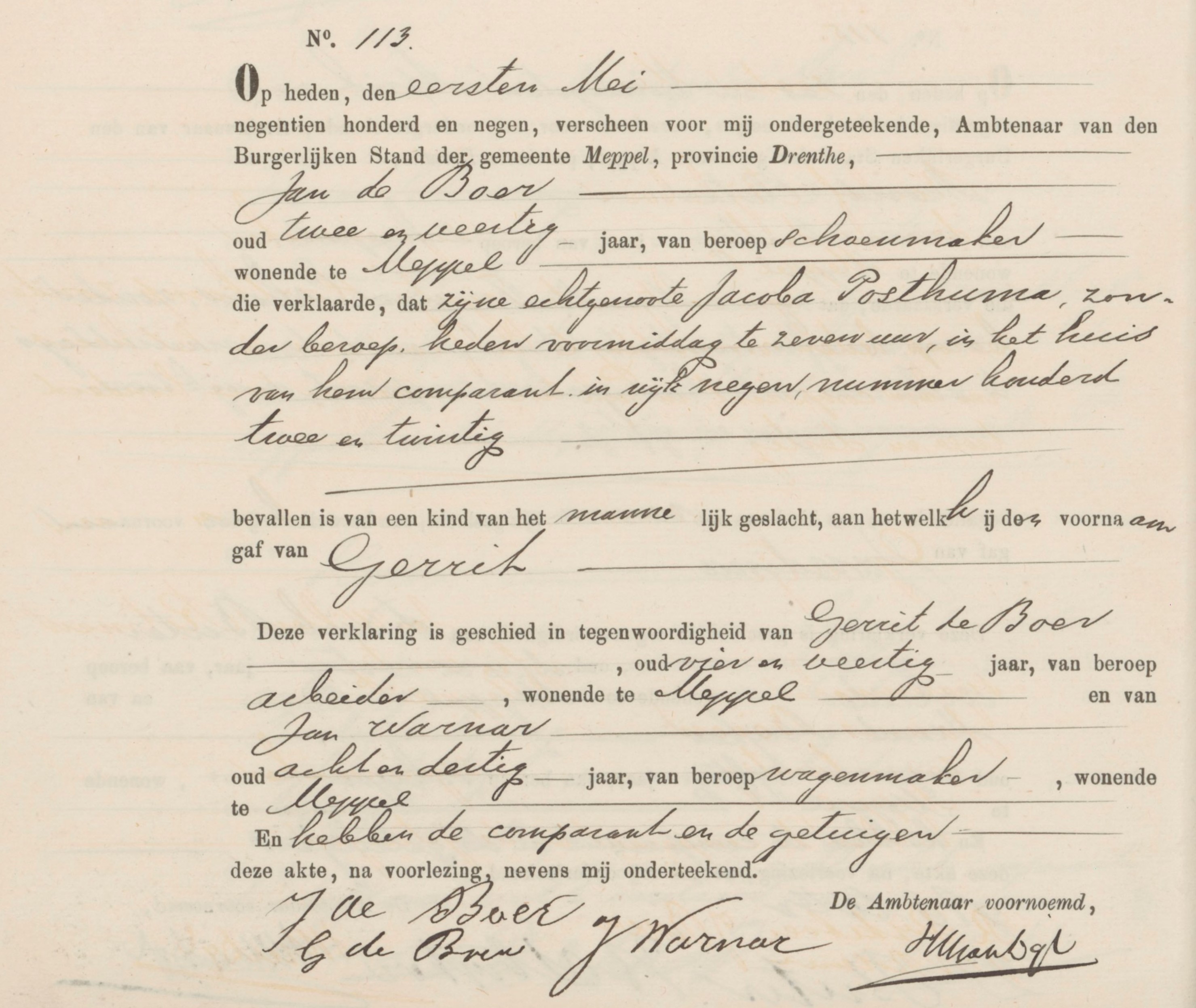 | Titel | BS Geboorte Meppel, akte 113, 01-05-1909 | |