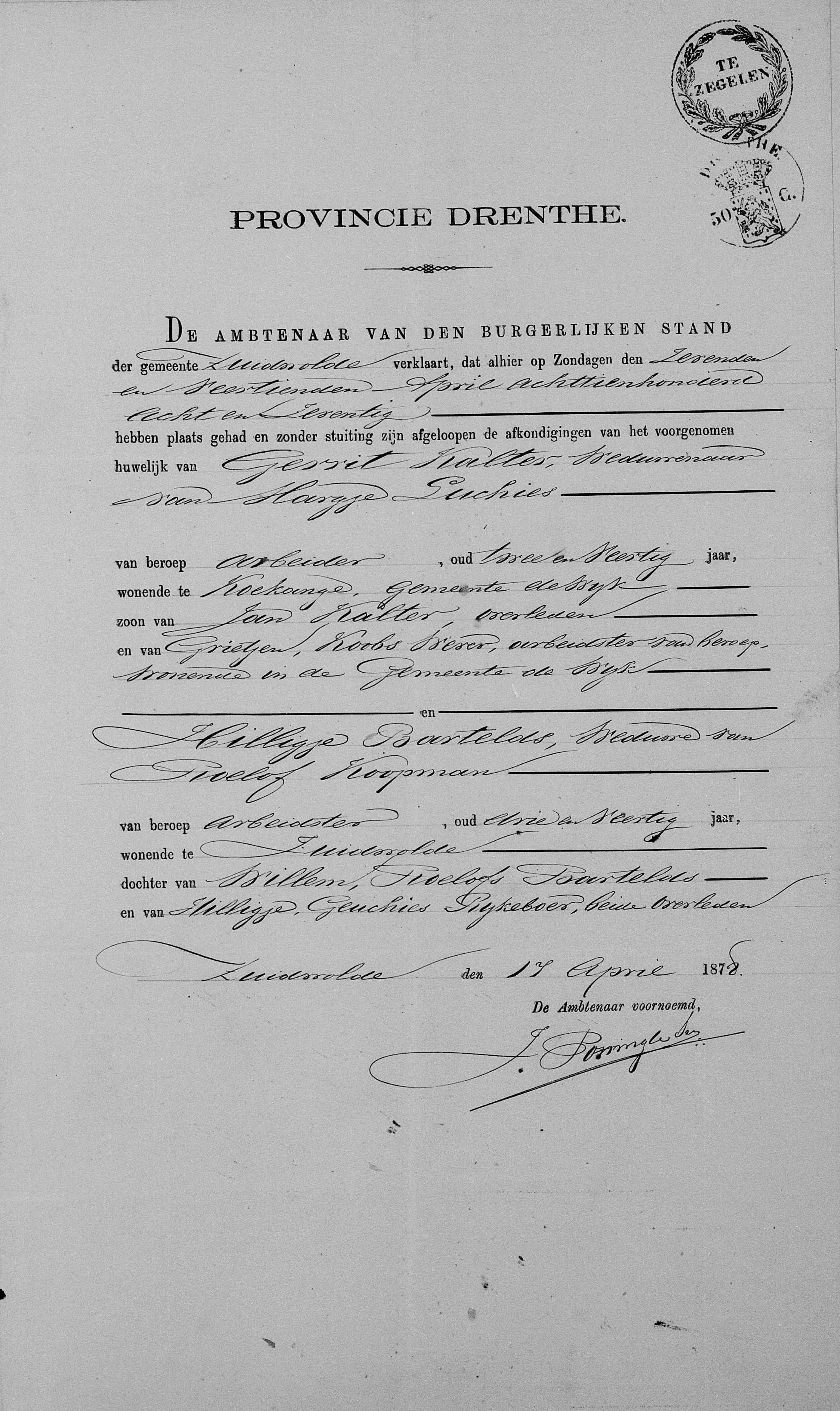 | Titel | BS Huwelijk Avereest, akte 50, 29-12-1882 | |