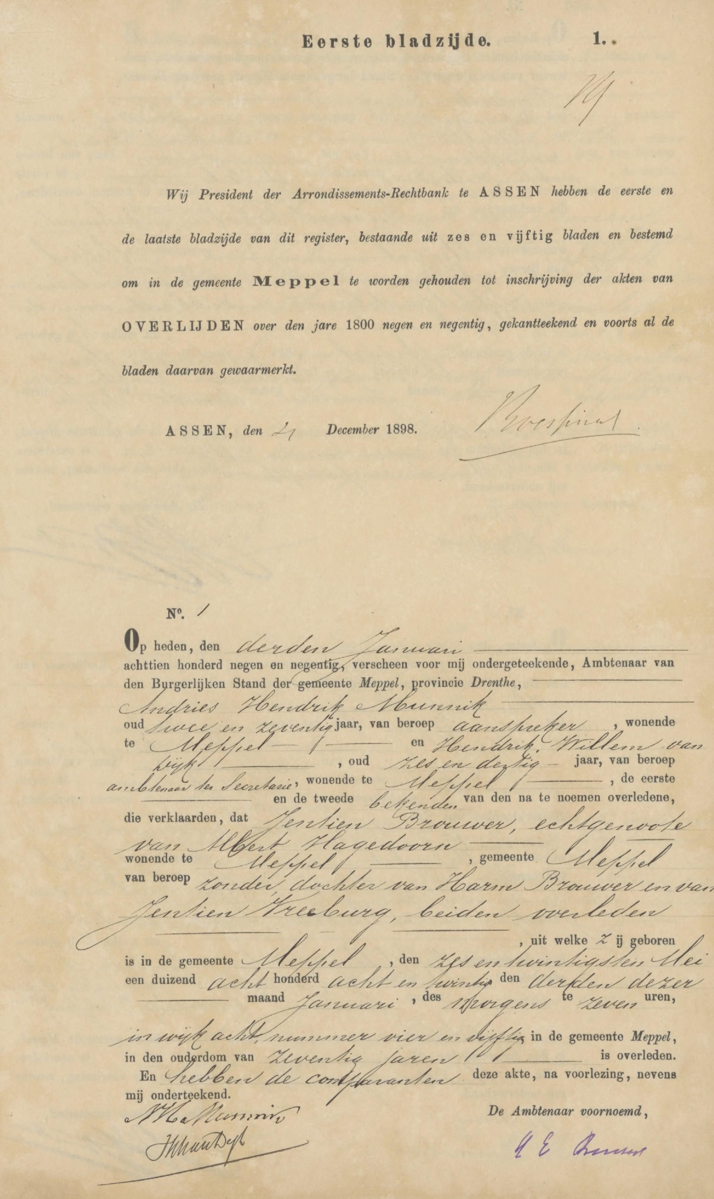 | Titel | BS Huwelijk Meppel, akte 18, 06-05-1899 | |