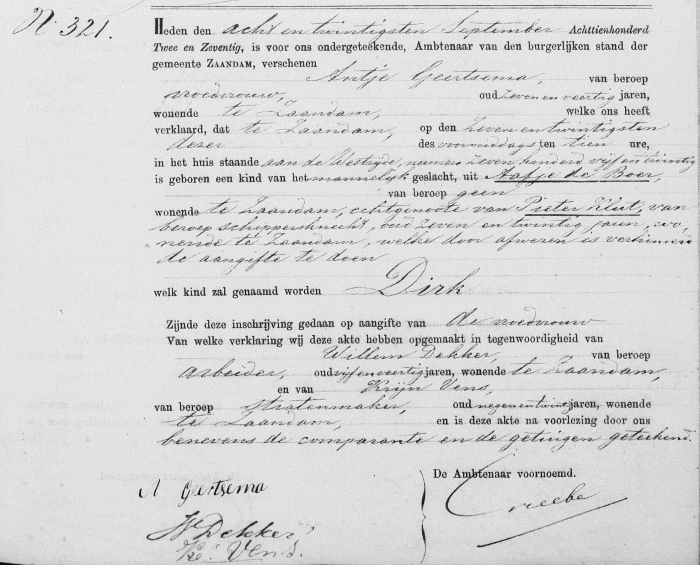 | Titel | BS Geboorte Zaandam, akte 321, 28-09-1872 | |